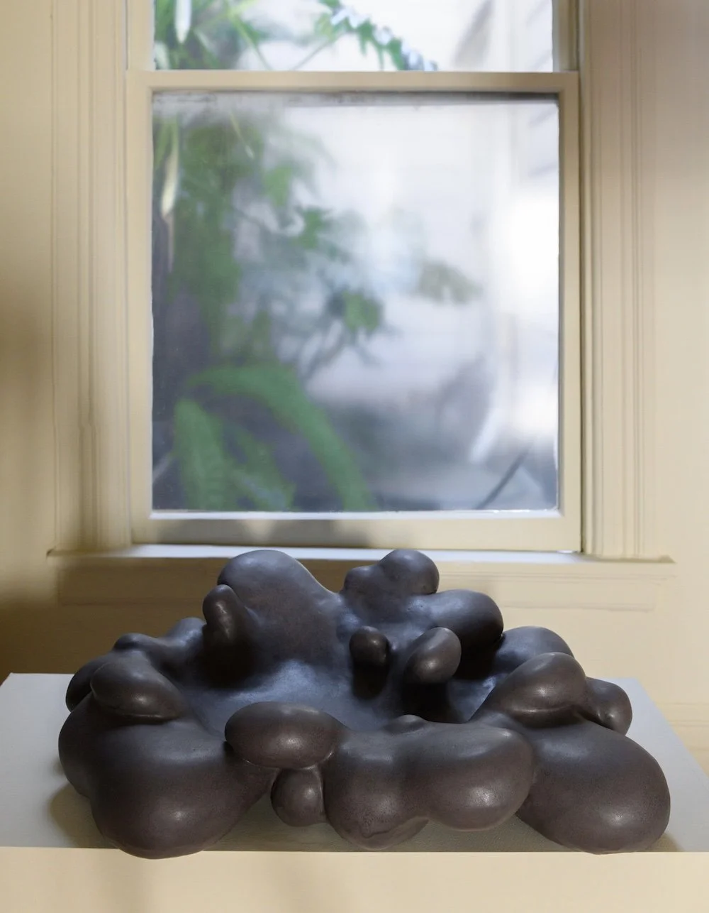 View fullsize   Rock Bottom,  2025, Glazed ceramic, plant, 24 24 × 32”